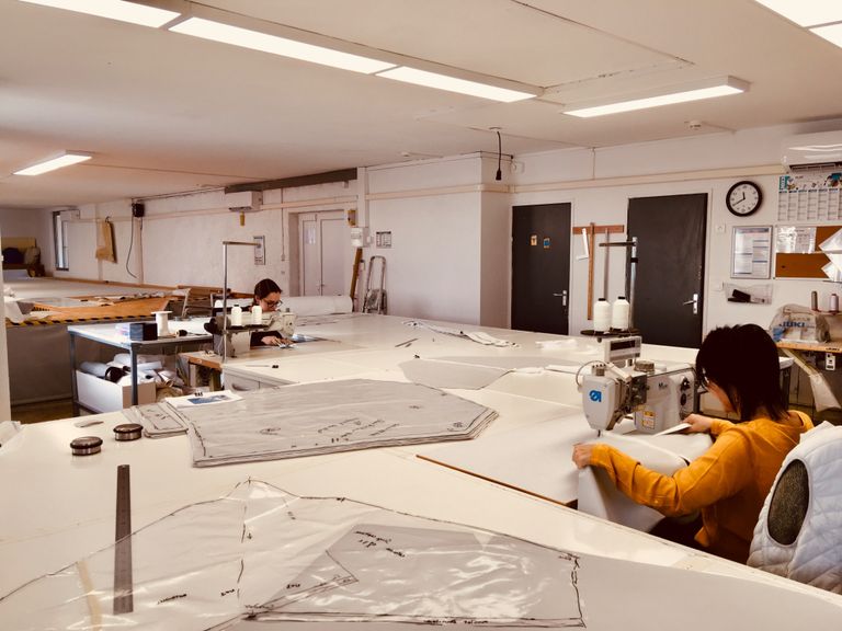 Notre atelier de 290 m2 dispose d’un show-room, d’un plancher voile et atelier sellerie baigné de lumière, et équipé de 5 machines à coudre dédiées à chaque opération. La fabrication est ainsi totalement intégrée, de la prise des dimensions, la réalisation à la confection des protections en toile jusqu’à la pose sur les bateaux.